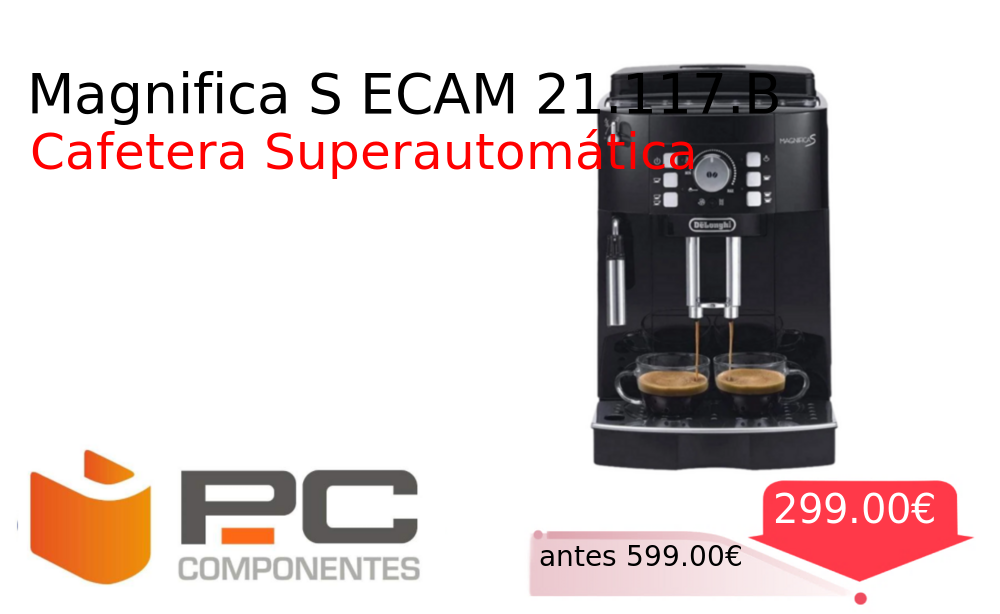 Mitad de precio✂️ Magnifica S ECAM 21.117.B❗️🆕 #PcComponentes 📛Precio Ya 299.00€❗️ (PVP: +599.00€) ✨Cafetera superautomática DeLonghi con molinillo integrado para espresso perfecto Diseño negro elegante y funciones intuitivas para uso diario con diseno innovador y funcional. cholloya.com/DELONGHI_MAGNIF
