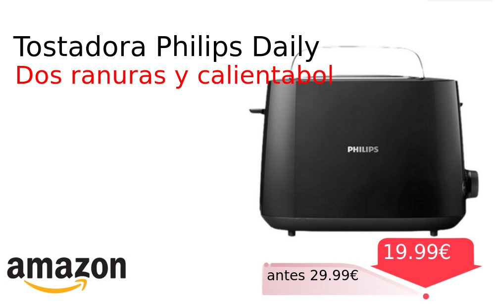 Más de un 30% 🚀 Tostadora Philips Daily❗️🆕 #Amazon 🇪🇸 📛Precio Ya 19.99€❗️ (PVP: +29.99€) ✨Tostadora con dos ranuras y ocho ajustes de tostado Incluye función de descongelación y rejilla para calentar bollos Elevación alta y apagado automático por. cholloya.com/PHILIPS_HD2581