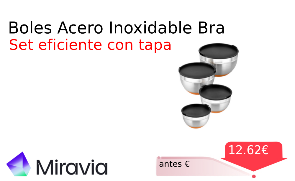 Buen Precio✨ Boles Acero Inoxidable Bra❗️🆕 #Miravia 📛Precio Ya 12.62€❗️ (PVP: +€) ✨Set de boles de acero inoxidable con tapa ideales para preparar mezclar y conservar alimentos Disponibles en lotes o sueltos desde doce hasta veinticuatro. cholloya.com/BRA_BOLES_ACERO