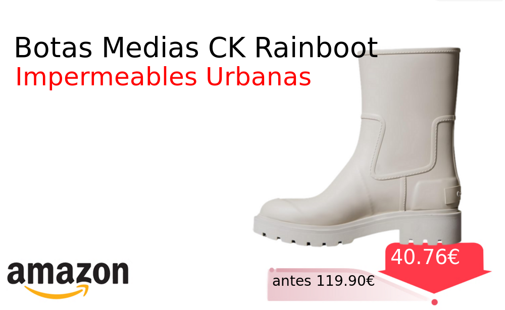Mitad de precio✂️ Botas Medias CK Rainboot❗️🆕 #Amazon 🇪🇸 📛Precio Ya 40.76€❗️ (PVP: +119.90€) ✨Botas medias de goma Calvin Klein ideales para la lluvia Diseño moderno y funcional que combina estilo urbano con protección impermeable duradera. cholloya.com/CK_RAINBOOT_MED