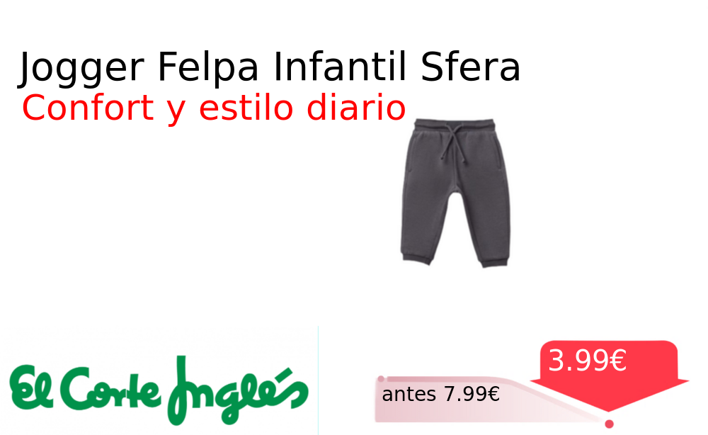Mitad de precio✂️ Jogger Felpa Infantil Sfera❗️🆕 #Elcorteingles 📛Precio Ya 3.99€❗️ (PVP: +7.99€) ✨Pantalón infantil de felpa suave y cómodo ideal para el día a día Diseño jogger con cintura elástica y puños perfecto para el ocio. cholloya.com/SFERA_JOGGER_FE