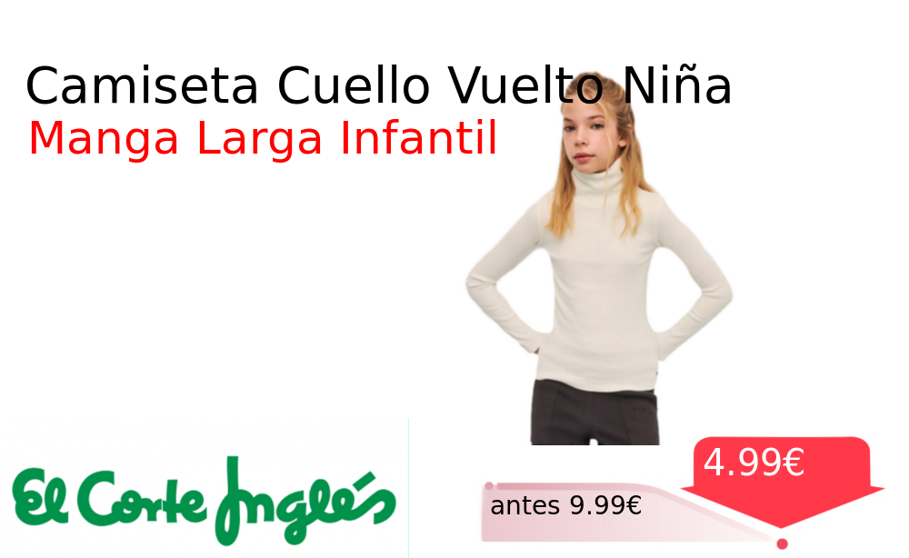 Mitad de precio✂️ Camiseta Cuello Vuelto Niña❗️🆕 #Elcorteingles 📛Precio Ya 4.99€❗️ (PVP: +9.99€) ✨Camiseta de manga larga con elegante cuello vuelto para niña Confeccionada en suave tejido ideal para el día a día Diseño cómodo y versátil. cholloya.com/KIDS_CUELLO_VUE