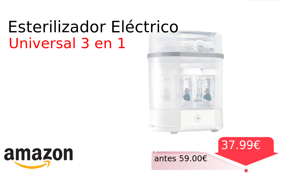 Más de un 30% 🚀 Esterilizador Eléctrico❗️🆕 #Amazon 🇪🇸 📛Precio Ya 37.99€❗️ (PVP: +59.00€) ✨Esterilizador eléctrico universal con tres programas y apagado automático Elimina gérmenes de biberones chupetes y accesorios de lactancia de forma rápida y segura. cholloya.com/CHICCO_ESTERILI