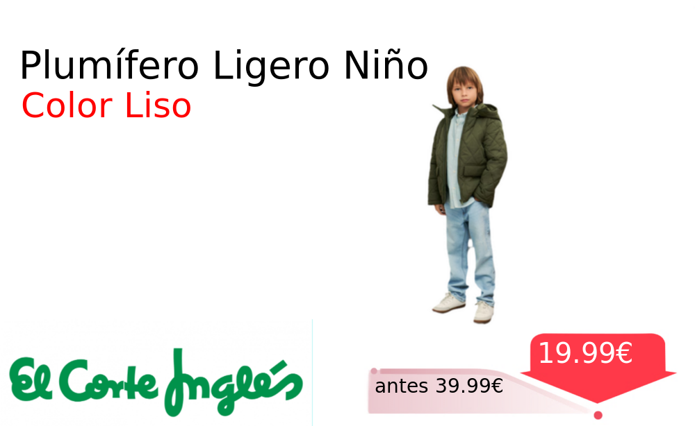 Mitad de precio✂️ Plumífero Ligero Niño❗️🆕 #Elcorteingles 📛Precio Ya 19.99€❗️ (PVP: +39.99€) ✨Plumífero infantil con acolchado ligero para un abrigo perfecto Color liso y diseño cómodo ideal para el día a día de los más pequeños. cholloya.com/KIDS_PLUMA_LIGE