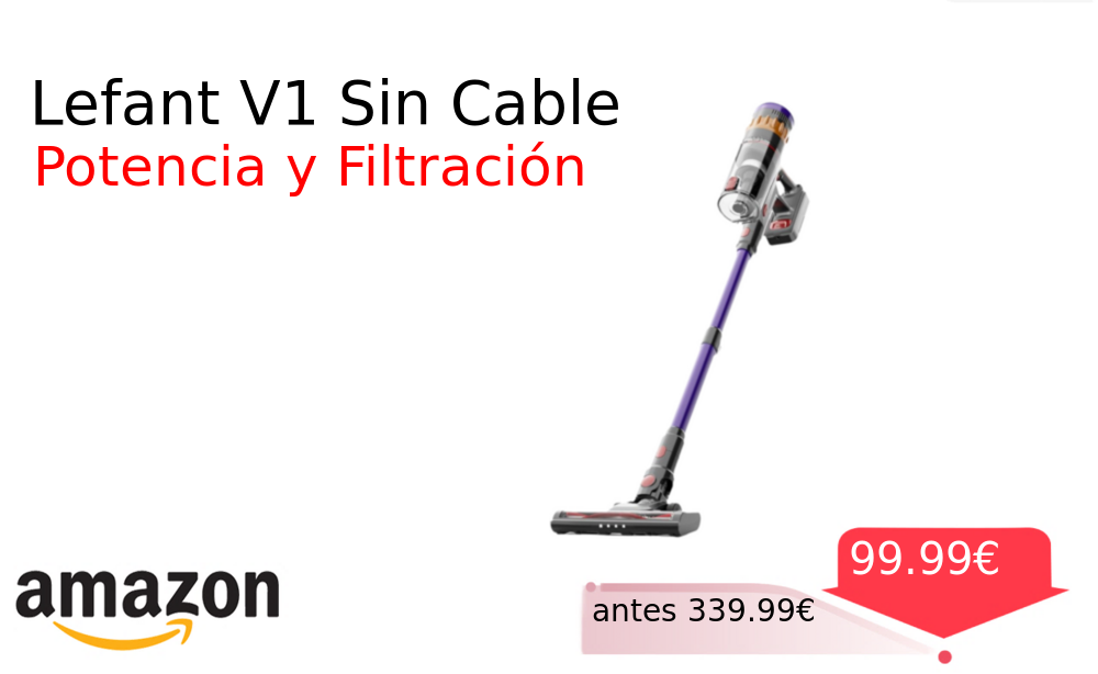 Mitad de precio✂️ Lefant V1 Sin Cable❗️🆕 #Amazon 🇪🇸 📛Precio Ya 99.99€❗️ (PVP: +339.99€) ✨Aspirador sin cable potente con 40 KPa de succión Filtración de 5 capas y pantalla LED táctil Incluye cepillo con luz y tubo extensible. cholloya.com/LEFANT_V1_ASPIR