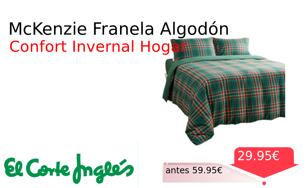 Mitad de precio✂️ McKenzie Franela Algodón❗️🆕 #Elcorteingles 📛Precio Ya 29.95€❗️ (PVP: +59.95€) ✨Juego de funda nórdica en suave franela de algodón Diseño McKenzie para un dormitorio acogedor Calidez y confort en cada detalle. cholloya.com/MCKENZIE_FRANEL