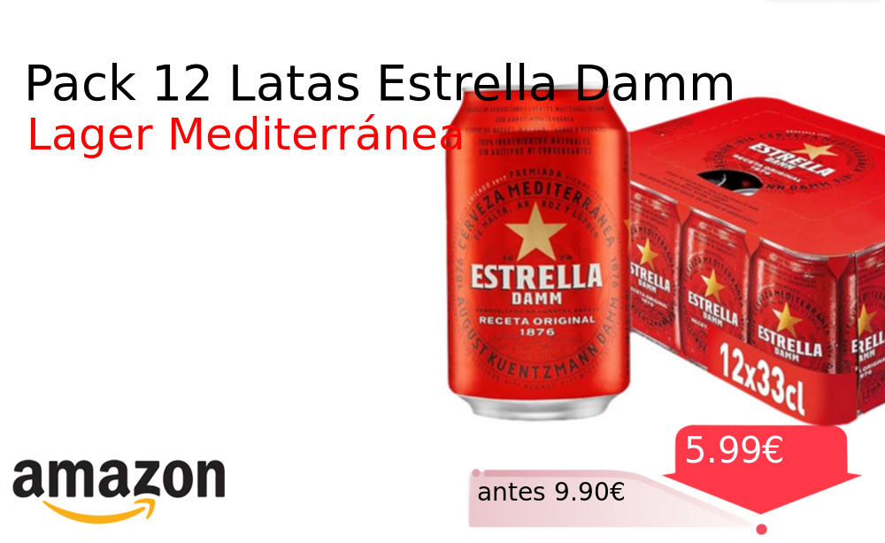 Más de un 30% 🚀 Pack 12 Latas Estrella Damm❗️🆕 #Amazon 🇪🇸 📛Precio Ya 5.99€❗️ (PVP: +9.90€) ✨Cerveza lager mediterránea con la receta original de 1876 Elaborada con ingredientes cien por cien naturales para un sabor auténtico y refrescante. cholloya.com/CERVEZA_ESTRELL