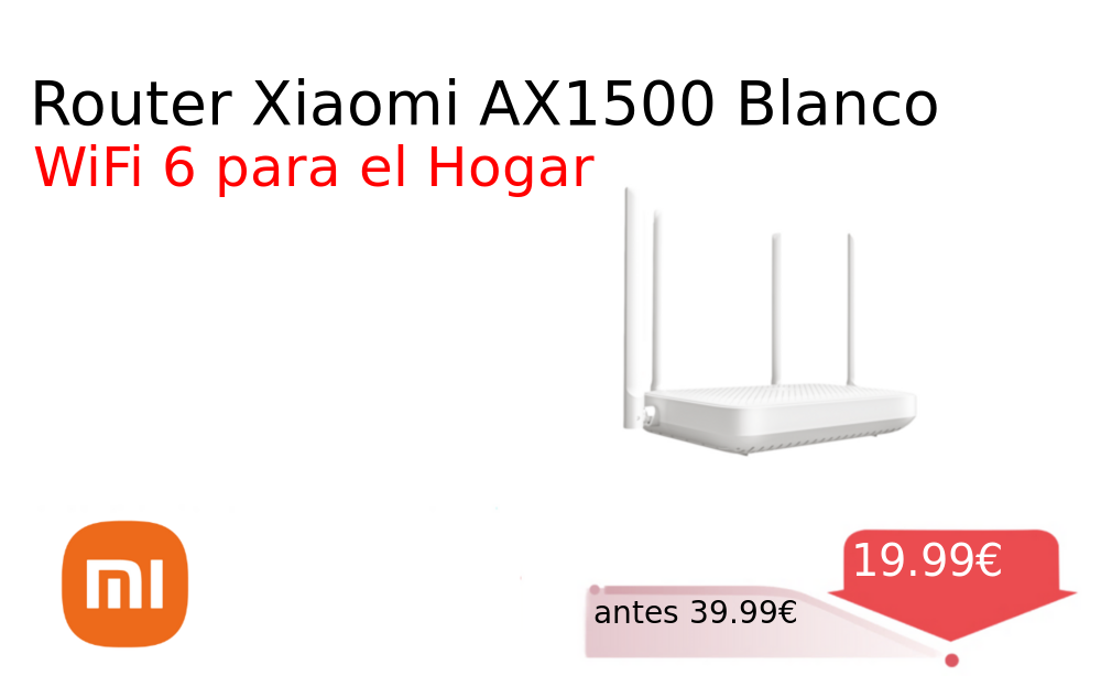 Mitad de precio✂️ Router Xiaomi AX1500 Blanco❗️🆕 #Mi 📛Precio Ya 19.99€❗️ (PVP: +39.99€) ✨Router WiFi 6 de Xiaomi en color blanco Ofrece alta velocidad y cobertura estable para tu hogar Producto original con garantía oficial del fabricante. cholloya.com/XIAOMI_AX1500