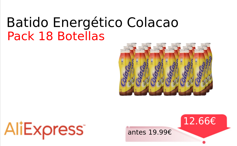 Más de un 30% 🚀 Batido Energético Colacao❗️🆕 #AliExpress 📛Precio Ya 12.66€❗️ (PVP: +19.99€) ✨Batido energético con sabor a Colacao Pack de dieciocho botellas individuales listas para llevar Ideal para deportistas y momentos que requieren un extra. cholloya.com/BATIDO_COLACAO_
