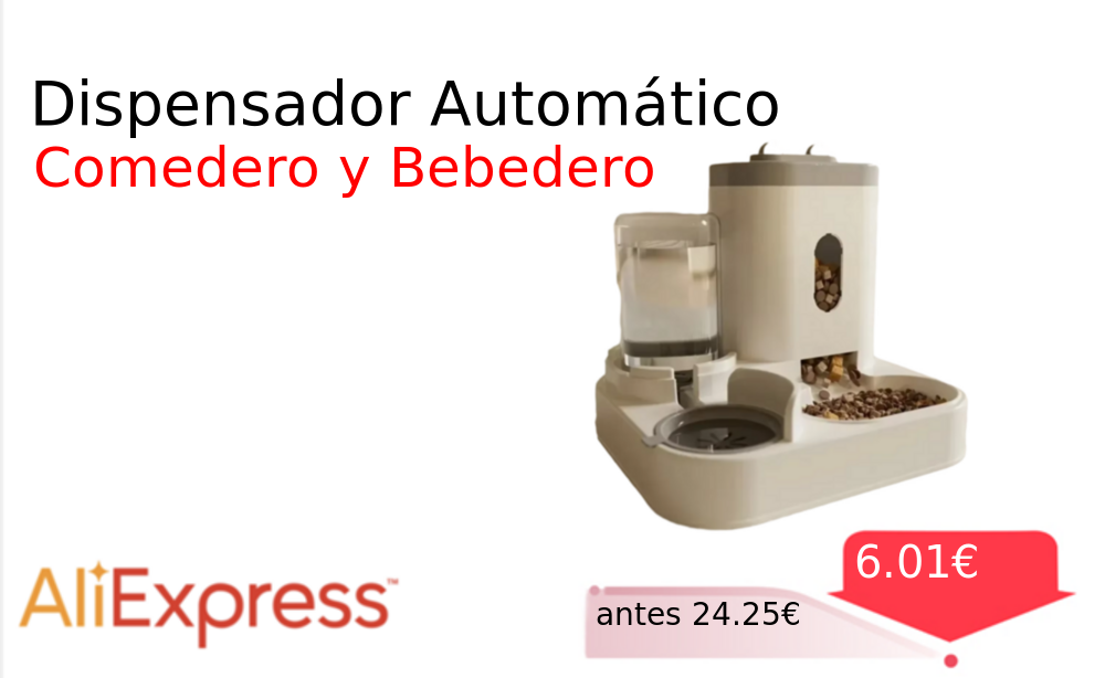 Mitad de precio✂️ Dispensador Automático❗️🆕 #AliExpress 📛Precio Ya 6.01€❗️ (PVP: +24.25€) ✨Dispensador automático de comida y agua para perros y gatos Gran capacidad de almacenamiento ideal para mantener a tu mascota alimentada y con agua. cholloya.com/ALIMENTADOR_AUT