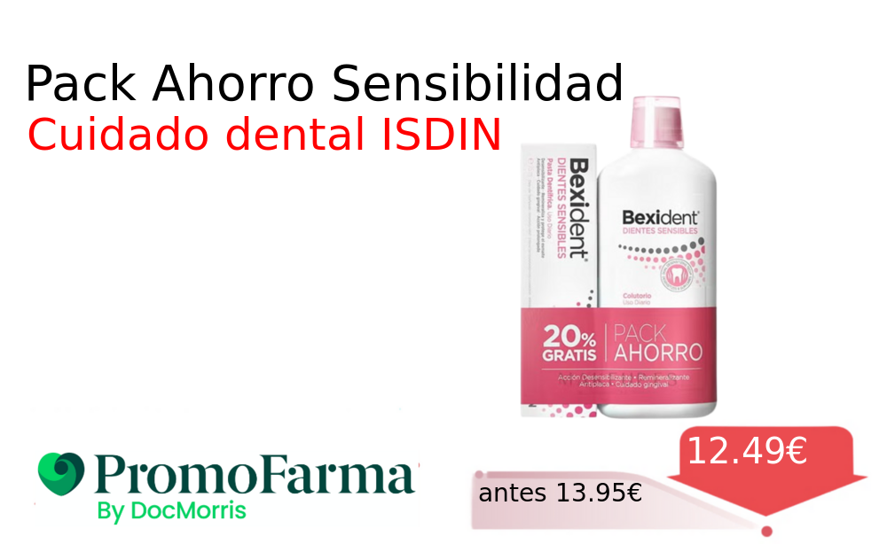 Buen Precio✨ Pack Ahorro Sensibilidad❗️🆕 #PromoFarma 📛Precio Ya 12.49€❗️ (PVP: +13.95€) ✨Pack ahorro de ISDIN Bexident para dientes sensibles Alivia el dolor y protege el esmalte con una fórmula eficaz y de uso diario. cholloya.com/ISDIN_BEXIDENT_