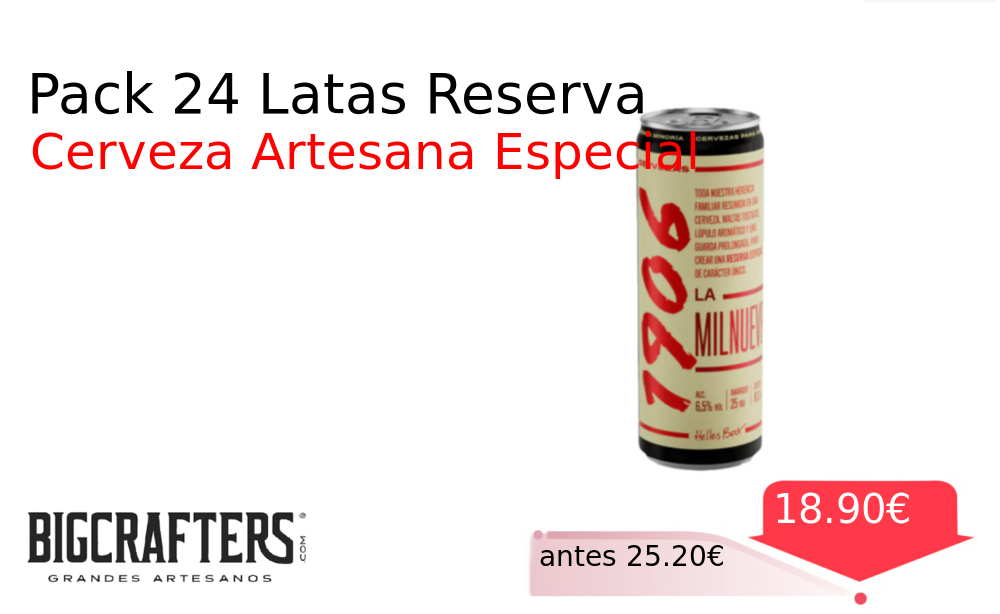 Buen Precio✨ Pack 24 Latas Reserva❗️🆕 #BigCrafters 📛Precio Ya 18.90€❗️ (PVP: +25.20€) ✨Cerveza artesana de alta calidad elaboración especial para un sabor único y refrescante Pack de veinticuatro latas premium con diseno innovador y funcional. cholloya.com/BIGCRAFTERS_190