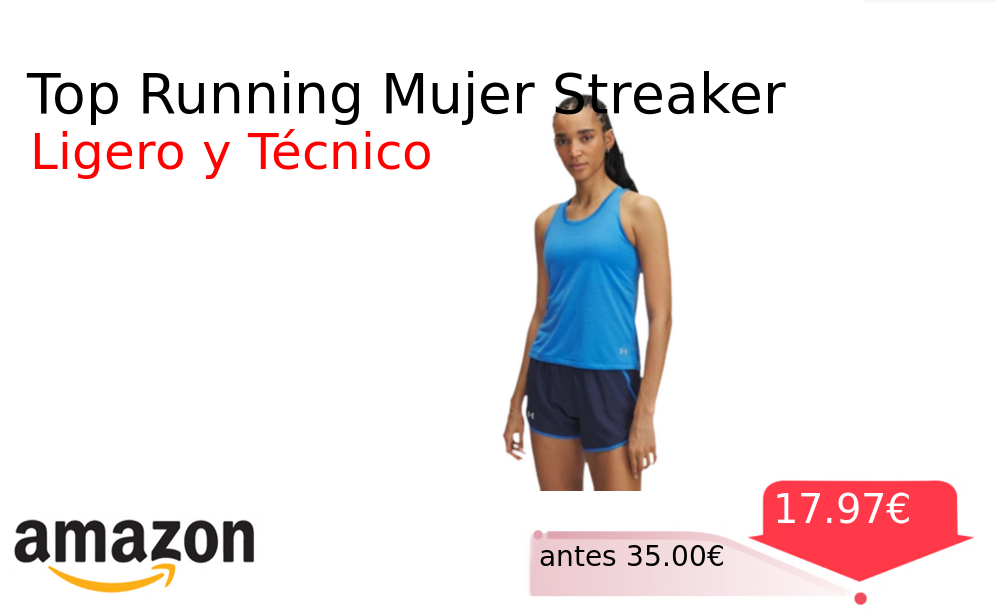 40% 📉 Vaya descuentazo‼‼ Top Running Mujer Streaker❗️🆕 #Amazon 🇪🇸 📛Precio Ya 17.97€❗️ (PVP: +35.00€) ✨Camiseta de running técnica para mujer Tejido ligero y transpirable que ofrece libertad de movimiento Diseño cómodo para entrenamientos intensos y competiciones. cholloya.com/UA_STREAKER_TOP