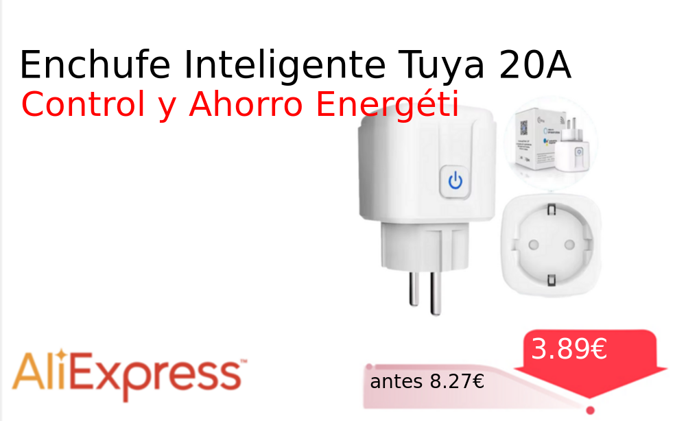 Mitad de precio✂️ Enchufe Inteligente Tuya 20A❗️🆕 #AliExpress 📛Precio Ya 3.89€❗️ (PVP: +8.27€) ✨Enchufe inteligente europeo con monitorización de consumo energético Controla dispositivos a distancia programa temporizadores y usa comandos de voz con Alexa o Google Home. cholloya.com/ENCHUFE_TUYA_20