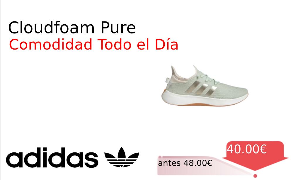 Buen Precio✨ Cloudfoam Pure❗️🆕 #Adidas 📛Precio Ya 40.00€❗️ (PVP: +48.00€) ✨Zapatillas que acompañan tu ritmo diario con comodidad ininterrumpida Su diseño ligero y amortiguación suave te impulsan en cada paso. cholloya.com/ADIDAS_CLOUDFOA