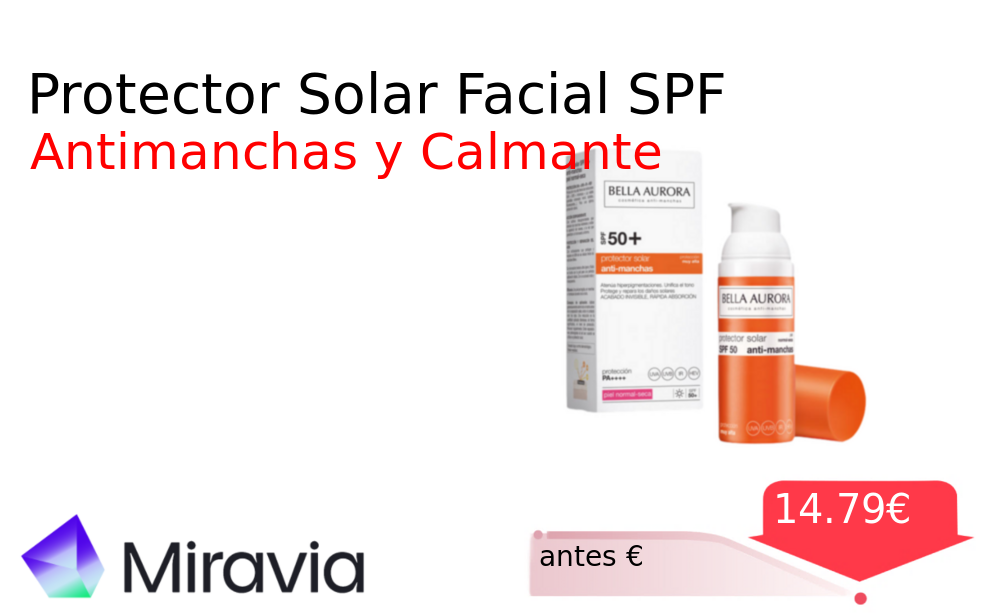 Buen Precio✨ Protector Solar Facial SPF❗️🆕 #Miravia 📛Precio Ya 14.79€❗️ (PVP: +€) ✨Protector solar facial de alta protección para piel normal a seca Textura cremosa de absorción rápida que calma la piel y previene la aparición. cholloya.com/BELLA_PROTECTOR