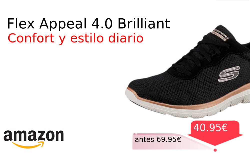 40% 📉 Vaya descuentazo‼‼ Flex Appeal 4.0 Brilliant❗️🆕 #Amazon 🇪🇸 📛Precio Ya 40.95€❗️ (PVP: +69.95€) ✨Zapatillas de mujer con diseño moderno y flexibilidad superior Ofrecen comodidad duradera para el día a día gracias a su construcción de materiales premium. cholloya.com/SKECHERS_FLEX_A