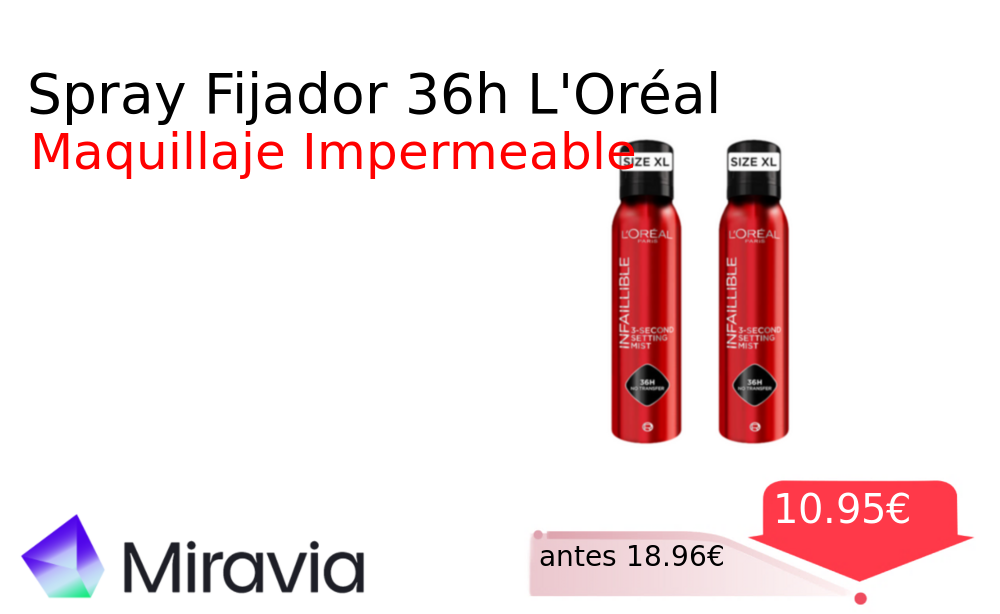 40% 📉 Vaya descuentazo‼‼ Spray Fijador 36h L'Oréal❗️🆕 #Miravia 📛Precio Ya 10.95€❗️ (PVP: +18.96€) ✨Spray fijador de larga duración para maquillaje Resistente al agua y al sebo garantiza un acabado impecable que se mantiene intacto durante todo el. cholloya.com/SPRAY_FIJADOR_3