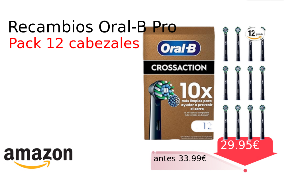 Buen Precio✨ Recambios Oral-B Pro❗️🆕 #Amazon 🇪🇸 📛Precio Ya 29.95€❗️ (PVP: +33.99€) ✨Cabezales de recambio originales Oral-B Pro CrossAction Diseñados para una limpieza profunda con tecnología de limpieza 3D Incluyen indicador de uso para un reemplazo. cholloya.com/ORALB_PRO_CROSS