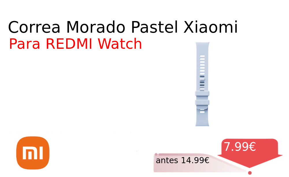 40% 📉 Vaya descuentazo‼‼ Correa Morado Pastel Xiaomi❗️🆕 #Mi 📛Precio Ya 7.99€❗️ (PVP: +14.99€) ✨Correa de TPU suave y flexible para tu REDMI Watch Diseño elegante en tono morado pastel y sistema de liberación rápida para un cambio. cholloya.com/XIAOMI_REDMI_WA