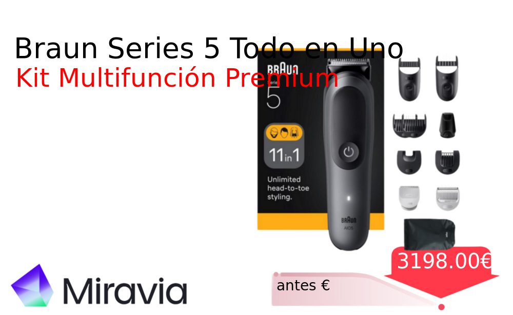 Buen Precio✨ Braun Series 5 Todo en Uno❗️🆕 #Miravia 📛Precio Ya 3198.00€❗️ (PVP: +€) ✨Máxima precisión para tu cuidado personal con este kit multifunción Incluye accesorios para un afeitado y recorte perfectos en cualquier zona Garantía oficial europea. cholloya.com/BRAUN_SERIES5_A