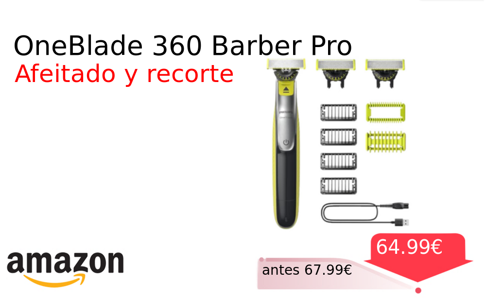 Buen Precio✨ OneBlade 360 Barber Pro❗️🆕 #Amazon 🇪🇸 📛Precio Ya 64.99€❗️ (PVP: +67.99€) ✨Afeitadora y recortadora facial y corporal con tecnología OneBlade Incluye tres cuchillas 360 y peines para barba incipiente Ideal para un afeitado preciso y. cholloya.com/PHILIPS_ONEBLAD