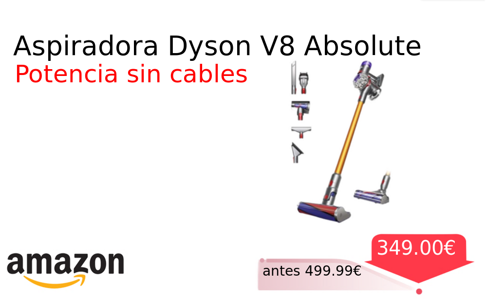 Más de un 30% 🚀 Aspiradora Dyson V8 Absolute❗️🆕 #Amazon 🇪🇸 📛Precio Ya 349.00€❗️ (PVP: +499.99€) ✨Aspiradora sin cable Dyson V8 Absolute con 115 AW de potencia Tecnología antienredos y cabezal giratorio suave Ligera y versátil para limpieza eficiente en. cholloya.com/DYSON_V8_ABSOLU