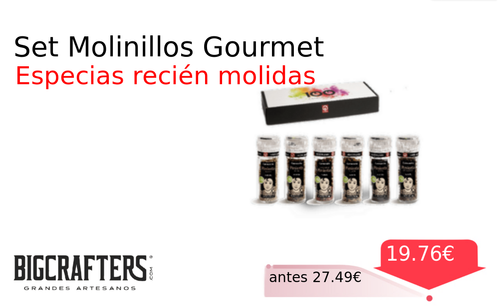 Buen Precio✨ Set Molinillos Gourmet❗️🆕 #BigCrafters 📛Precio Ya 19.76€❗️ (PVP: +27.49€) ✨Seis molinillos de calidad profesional para especias sal y pimienta Perfectos para cocinar con ingredientes recién molidos Ideal para amantes de la gastronomía. cholloya.com/PACK_MOLINILLOS