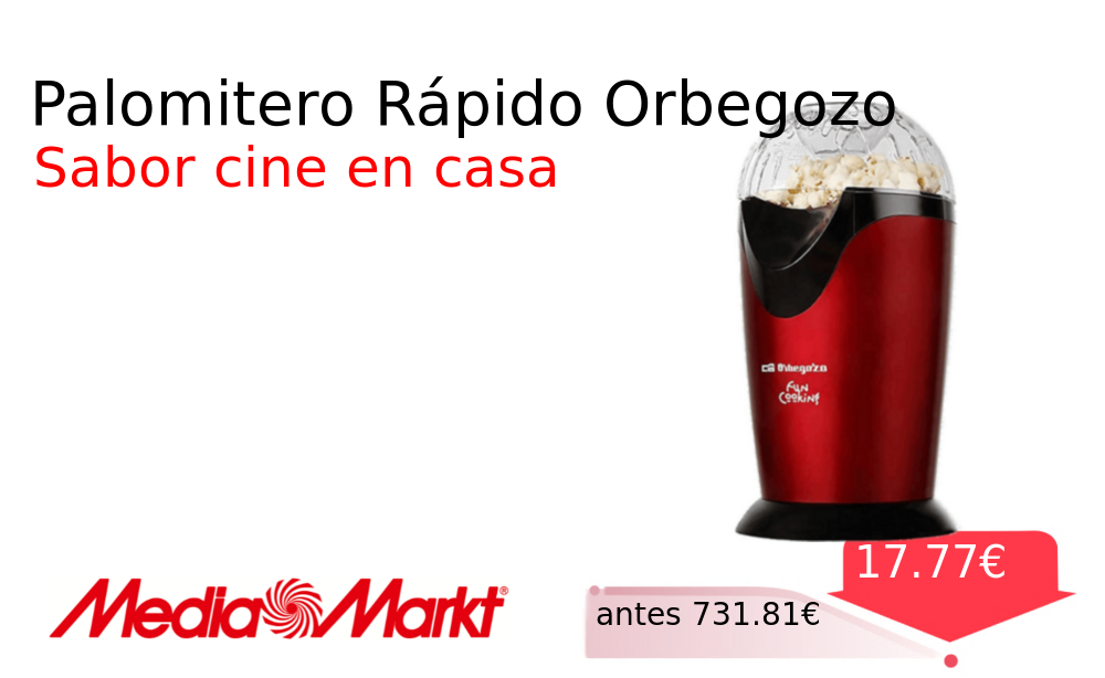Mitad de precio✂️ Palomitero Rápido Orbegozo❗️🆕 #MediaMarkt 📛Precio Ya 17.77€❗️ (PVP: +731.81€) ✨Palomitero Orbegozo PA 4300 reacondicionado funcionamiento rápido con cazo medidor Disfruta del auténtico sabor de cine en casa de forma portátil y eficiente. cholloya.com/ORBEGOZO_PA4300
