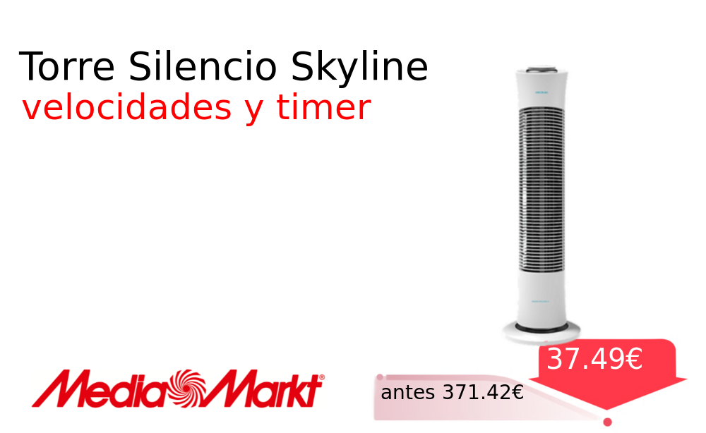 Mitad de precio✂️ Torre Silencio Skyline❗️🆕 #MediaMarkt 📛Precio Ya 37.49€❗️ (PVP: +371.42€) ✨Ventilador de torre silencioso con 3 velocidades y temporizador Altura 80 cm diseño blanco moderno Funciona perfectamente con garantía completa con diseno innovador y. cholloya.com/CECOTEC_FORCESI