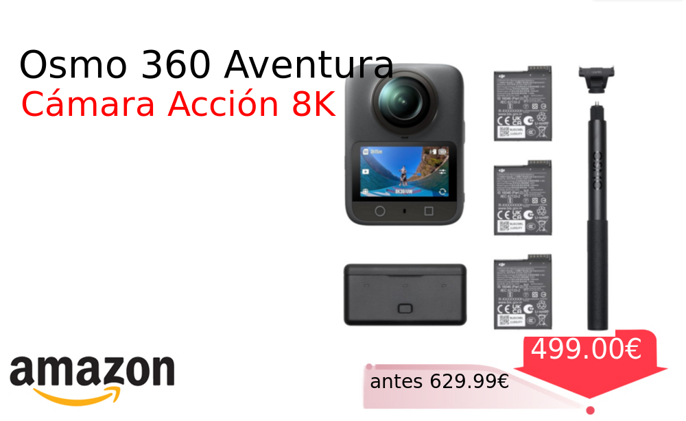 Buen Precio✨ Osmo 360 Aventura❗️🆕 #Amazon 🇪🇸 📛Precio Ya 499.00€❗️ (PVP: +629.99€) ✨Captura cada ángulo con esta cámara de acción 360 y sensor de una pulgada Batería de larga duración y vídeo en 8K nativo. cholloya.com/CAMARA_360_8K