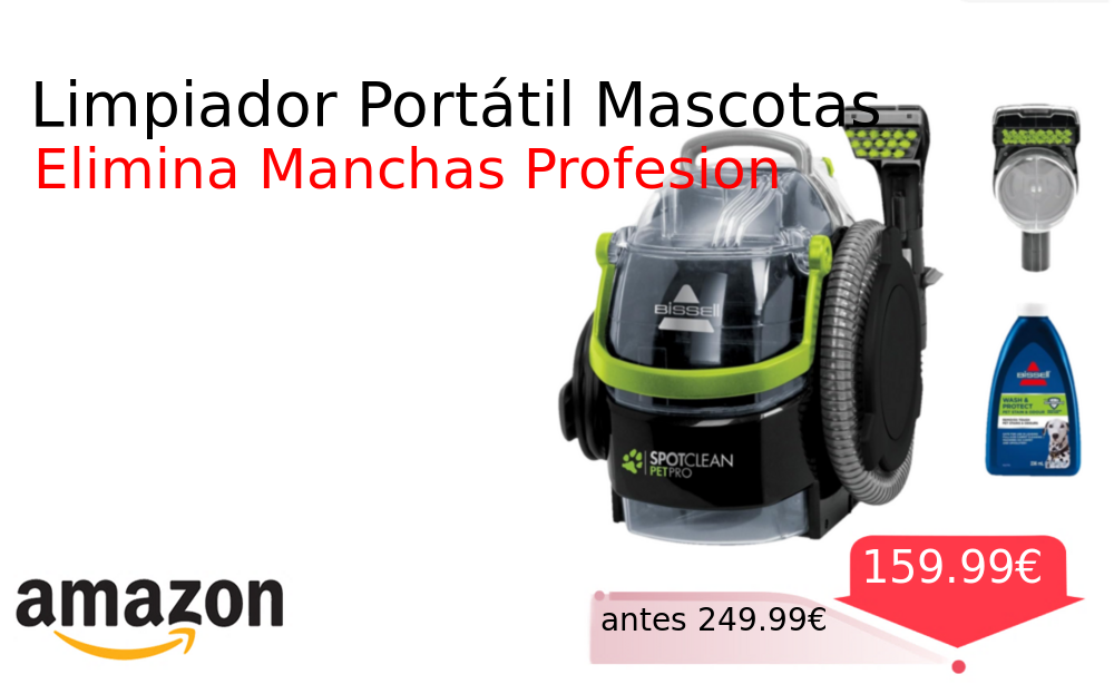 Más de un 30% 🚀 Limpiador Portátil Mascotas❗️🆕 #Amazon 🇪🇸 📛Precio Ya 159.99€❗️ (PVP: +249.99€) ✨Limpiador portátil profesional para mascotas con potencia de 750W Elimina manchas difíciles y olores eficazmente en tapicerías y alfombras Diseño compacto y funcional. cholloya.com/BISSELL_SPOTCLE