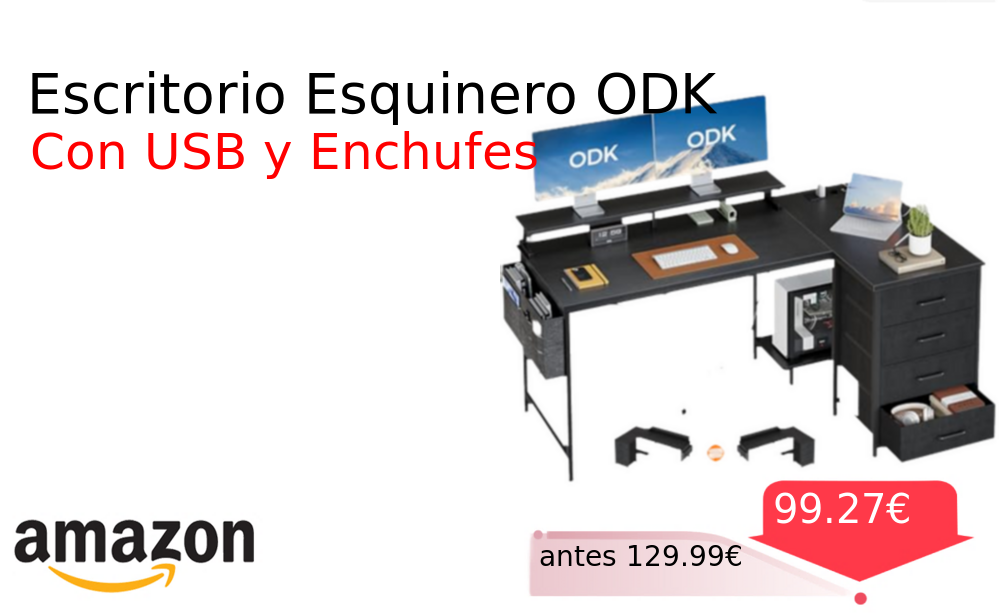 Buen Precio✨ Escritorio Esquinero ODK❗️🆕 #Amazon 🇪🇸 📛Precio Ya 99.27€❗️ (PVP: +129.99€) ✨Escritorio esquinero reversible con cuatro cajones de tela y estante para monitor Incluye puertos USB y enchufes integrados para carga conveniente durante trabajo u. cholloya.com/ESCRITORIO_ODK