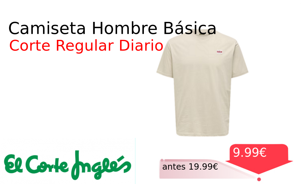Mitad de precio✂️ Camiseta Hombre Básica❗️🆕 #Elcorteingles 📛Precio Ya 9.99€❗️ (PVP: +19.99€) ✨Camiseta básica de corte regular para hombre Material suave y transpirable ideal para uso diario Diseño versátil que combina con todo. cholloya.com/ONLY_SONS_BASIC