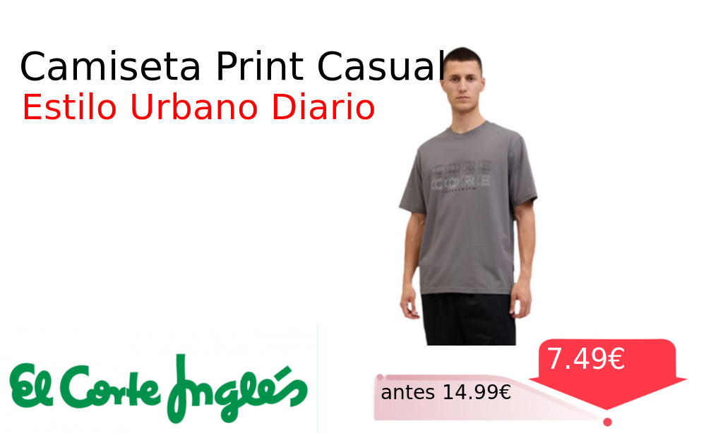 Mitad de precio✂️ Camiseta Print Casual❗️🆕 #Elcorteingles 📛Precio Ya 7.49€❗️ (PVP: +14.99€) ✨Camiseta básica de manga corta con diseño frontal Material suave y cómodo para uso diario Ideal para looks casuales y deportivos. cholloya.com/JACKJONES_PRINT