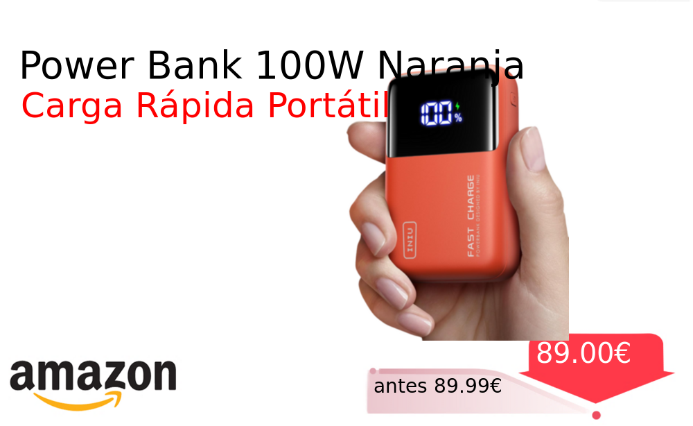 Buen Precio✨ Power Bank 100W Naranja❗️🆕 #Amazon 🇪🇸 📛Precio Ya 89.00€❗️ (PVP: +89.99€) ✨Batería externa ultra rápida 100W con 20000mAh USB-C dual para MacBook Steam Deck y smartphones Esencial de viaje compacto en vibrante color naranja. cholloya.com/INIU_POWERBANK_