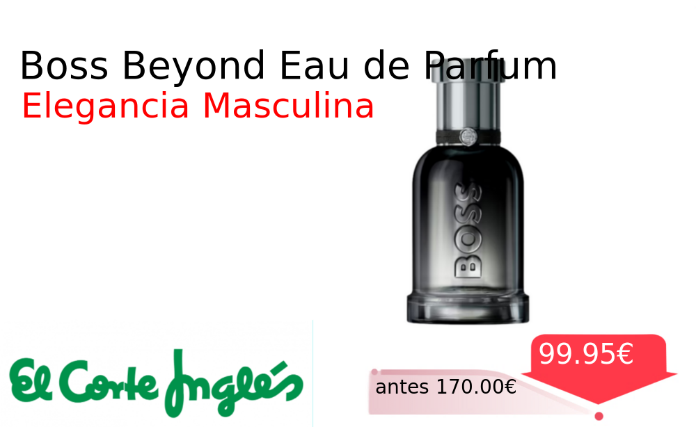 40% 📉 Vaya descuentazo‼‼ Boss Beyond Eau de Parfum❗️🆕 #Elcorteingles 📛Precio Ya 99.95€❗️ (PVP: +170.00€) ✨Fragancia masculina intensa con notas amaderadas y especiadas Elegancia sofisticada que perdura durante horas ideal para ocasiones especiales y uso diario distinguido. cholloya.com/BOSS_BOTTLED_BE