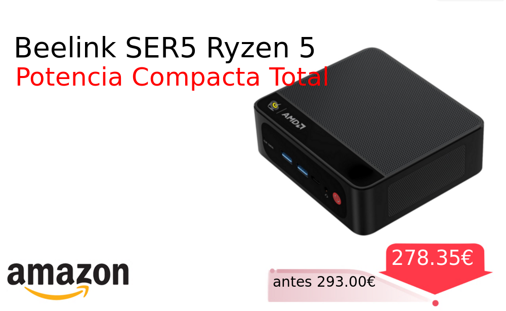 Buen Precio✨ Beelink SER5 Ryzen 5❗️🆕 #Amazon 🇪🇸 📛Precio Ya 278.35€❗️ (PVP: +293.00€) ✨Mini PC compacto con procesador AMD Ryzen 5 32 GB RAM y almacenamiento SSD rápido Conexiones múltiples para monitores red ultrarrápida y tecnología inalámbrica. cholloya.com/BEELINK_SER5_MI