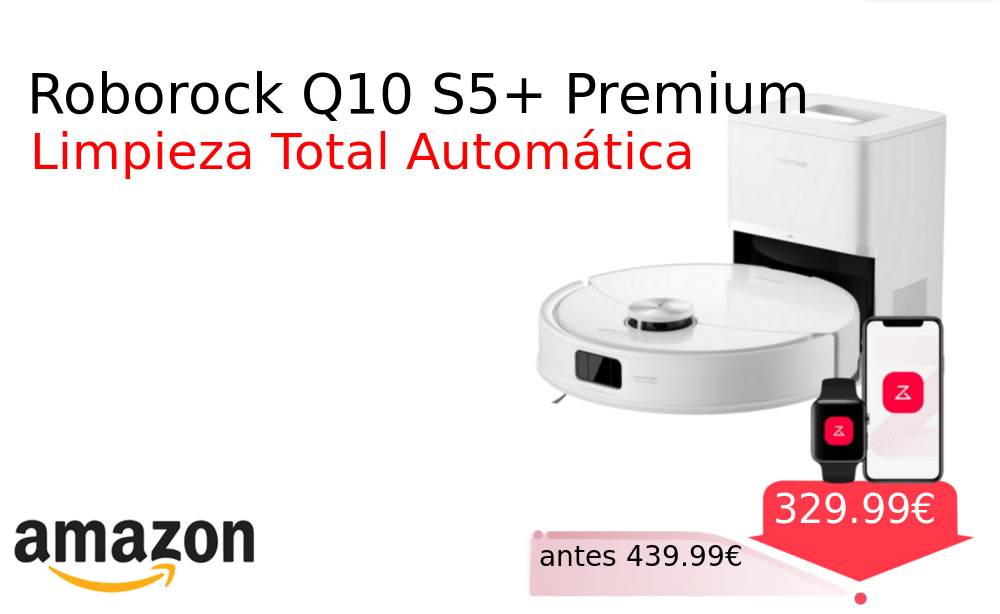 Buen Precio✨ Roborock Q10 S5+ Premium❗️🆕 #Amazon 🇪🇸 📛Precio Ya 329.99€❗️ (PVP: +439.99€) ✨Robot aspirador y fregasuelo 2 en 1 con 10000 Pa de potencia Sistema antienredos y navegación LiDAR precisa Control por aplicación y vaciado automático. cholloya.com/ROBOROCK_Q10_S5