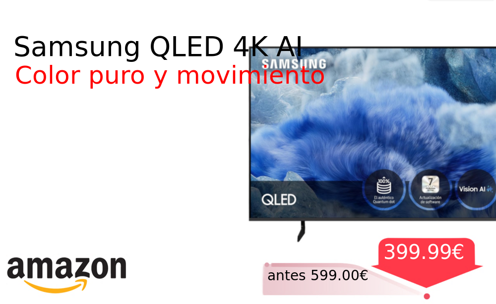 Más de un 30% 🚀 Samsung QLED 4K AI❗️🆕 #Amazon 🇪🇸 📛Precio Ya 399.99€❗️ (PVP: +599.00€) ✨Televisor Samsung QLED con tecnología 4K y visión artificial Disfruta colores puros gracias al Quantum Dot y movimiento fluido con Motion Xcelerator en pantalla. cholloya.com/TV_SAMSUNG_Q8F