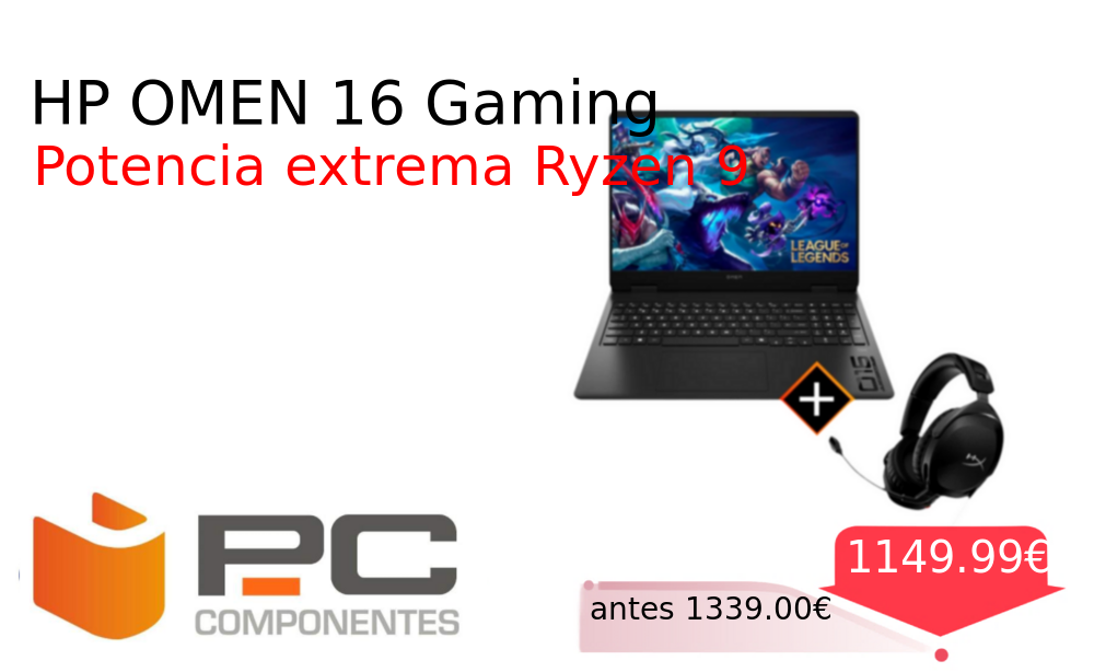 Buen Precio✨ HP OMEN 16 Gaming❗️🆕 #PcComponentes 📛Precio Ya 1149.99€❗️ (PVP: +1339.00€) ✨Portátil gaming HP OMEN con pantalla 16 pulgadas procesador AMD Ryzen 9 y tarjeta gráfica RTX 5060 Memoria RAM 32GB y almacenamiento SSD 1TB. cholloya.com/HP_OMEN_GAMING