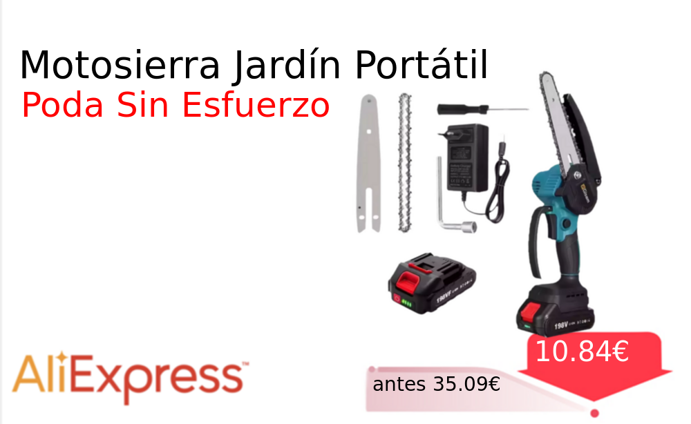 Mitad de precio✂️ Motosierra Jardín Portátil❗️🆕 #AliExpress 📛Precio Ya 10.84€❗️ (PVP: +35.09€) ✨Herramienta de poda ligera y compacta para jardinería funciona sin cables con batería de larga duración Ideal para ramas y trabajos de precisión al. cholloya.com/MOTOSIERRA_JARD