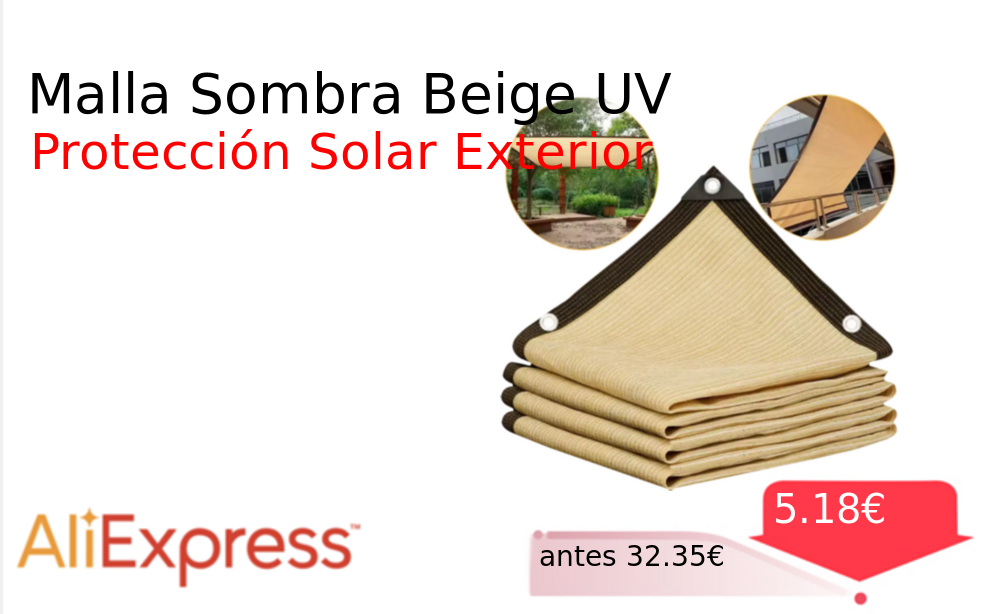 Mitad de precio✂️ Malla Sombra Beige UV❗️🆕 #AliExpress 📛Precio Ya 5.18€❗️ (PVP: +32.35€) ✨Red de sombreado beige con protección UV para exteriores Ideal cobertizo plantas y áreas de descanso Tela HDPE resistente bloquea rayos solares eficazmente. cholloya.com/MALLA_SOMBRA_UV