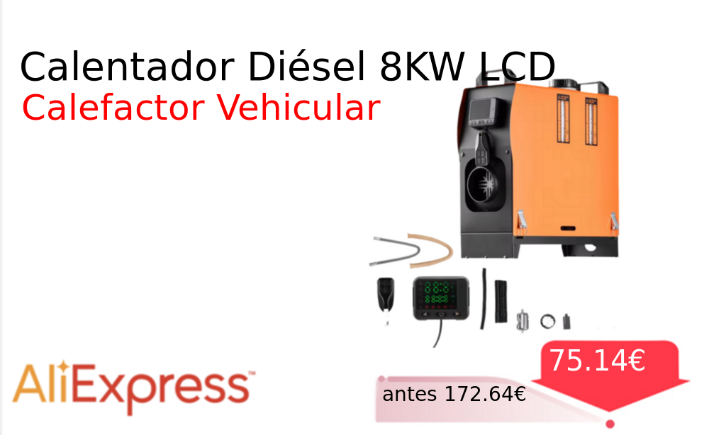 Mitad de precio✂️ Calentador Diésel 8KW LCD❗️🆕 #AliExpress 📛Precio Ya 75.14€❗️ (PVP: +172.64€) ✨Calentador diésel silencioso de 8KW con pantalla LCD y mando a distancia Ideal para calefacción en vehículos embarcaciones y remolques durante estacionamientos prolongados. cholloya.com/CALENTADOR_DIES