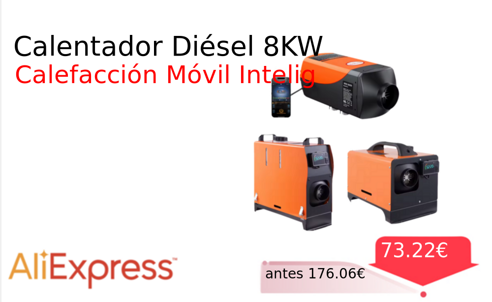 Mitad de precio✂️ Calentador Diésel 8KW❗️🆕 #AliExpress 📛Precio Ya 73.22€❗️ (PVP: +176.06€) ✨Calentador diésel compacto de 8KW con control Bluetooth y pantalla LCD Ideal para calefacción en vehículos recreativos barcos y remolques durante viajes o estacionamientos. cholloya.com/CALENTADOR_DIES
