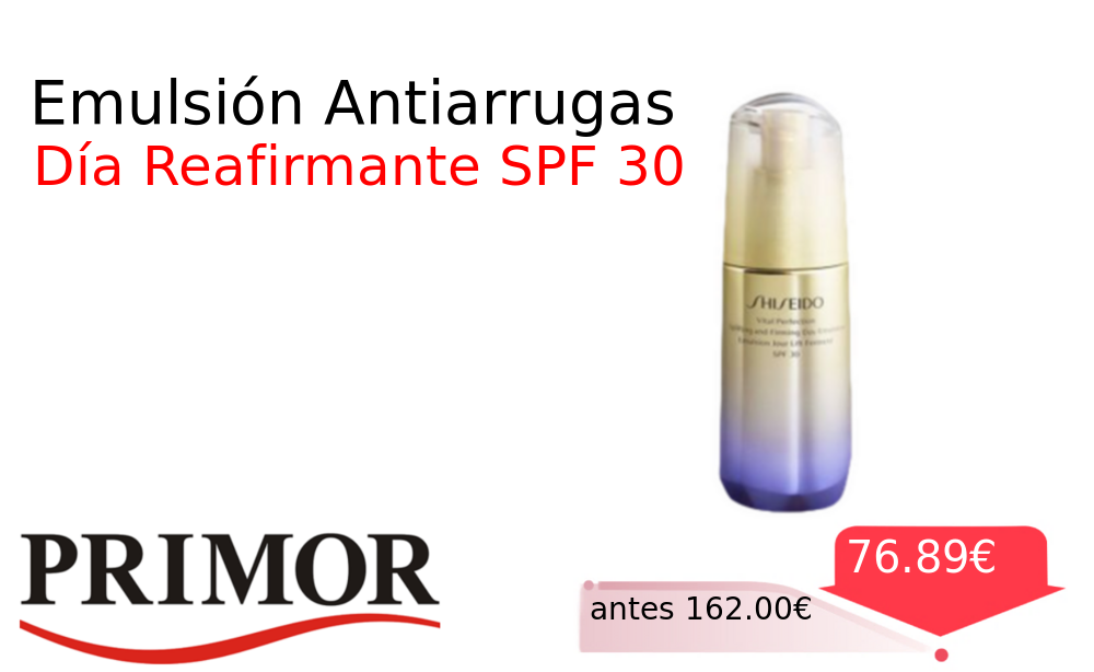 Mitad de precio✂️ Emulsión Antiarrugas❗️🆕 #Primor 📛Precio Ya 76.89€❗️ (PVP: +162.00€) ✨Emulsión diurna con SPF 30 que reafirma y levanta la piel combatiendo los signos de la edad para un rostro más firme y luminoso. cholloya.com/SHISEIDO_VITAL_