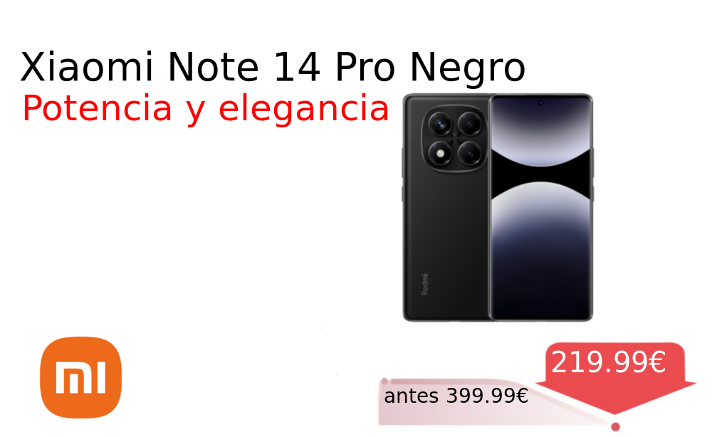 40% 📉 Vaya descuentazo‼‼ Xiaomi Note 14 Pro Negro❗️🆕 #Mi 📛Precio Ya 219.99€❗️ (PVP: +399.99€) ✨Smartphone Xiaomi con potencia excepcional y almacenamiento amplio Su diseño en negro medianoche es sofisticado y moderno ideal para el uso diario intensivo. cholloya.com/XIAOMI_NOTE14PR
