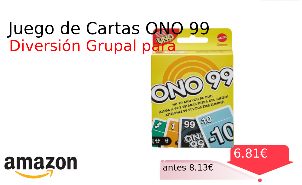 Buen Precio✨ Juego de Cartas ONO 99❗️🆕 #Amazon 🇪🇸 📛Precio Ya 6.81€❗️ (PVP: +8.13€) ✨Divertido juego de cartas para grupos grandes Suma números hasta 99 usa acciones especiales y evita perder Ideal para fiestas y reuniones familiares. cholloya.com/JUEGO_CARTAS_ON