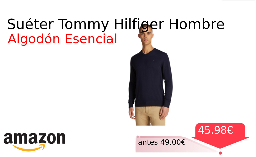 Buen Precio✨ Suéter Tommy Hilfiger Hombre❗️🆕 #Amazon 🇪🇸 📛Precio Ya 45.98€❗️ (PVP: +49.00€) ✨Suéter de cuello redondo en algodón esencial para hombre Diseño clásico Tommy Hilfiger con acabados premium y confort duradero para tu día a día. cholloya.com/TOMMY_VNECK