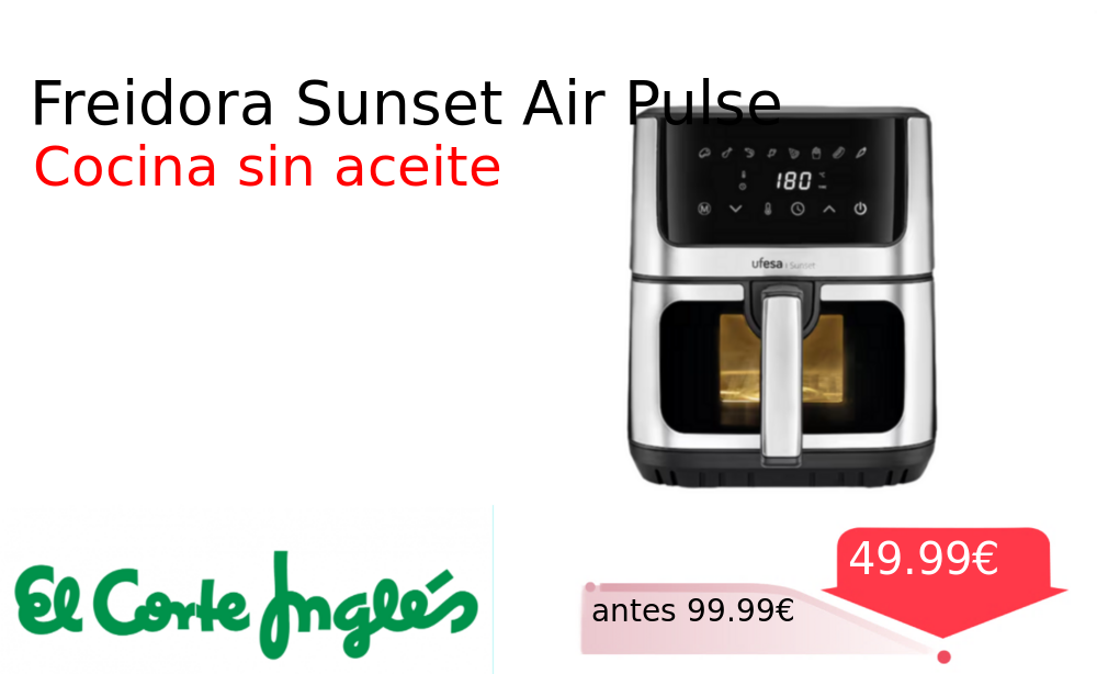 Mitad de precio✂️ Freidora Sunset Air Pulse❗️🆕 #Elcorteingles 📛Precio Ya 49.99€❗️ (PVP: +99.99€) ✨Freidora Ufesa Sunset con tecnología Air Pulse para cocinar de forma saludable Resultados crujientes sin aceite fácil limpieza y diseño compacto para tu cocina. cholloya.com/UFESA_SUNSET
